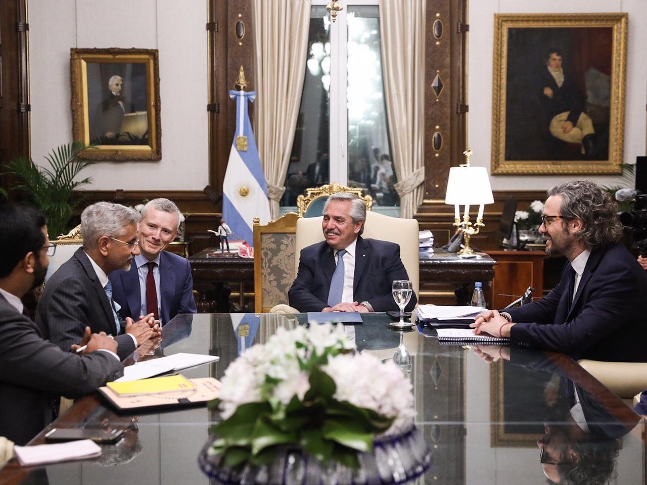 Por su parte, Jaishankar expresó que “es un honor que me haya recibido el señor presidente Alberto Fernández. Hemos hablado sobre una amplia gama de temas y de cómo aumentar nuestra cooperación económica”.