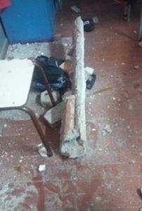 En conferencia de prensa realizada este viernes el gremio docente Suteba denunció que en un aula de primer grado de la Escuela 25 de Del Viso, partido de Pilar, se cayó parte de una viga.